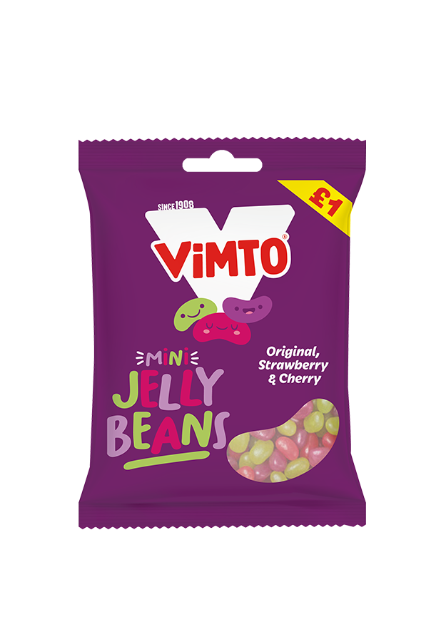 Tantalise your tastebuds with an assortment of Vimto classic Jelly Beans, original, cherry and strawberry.