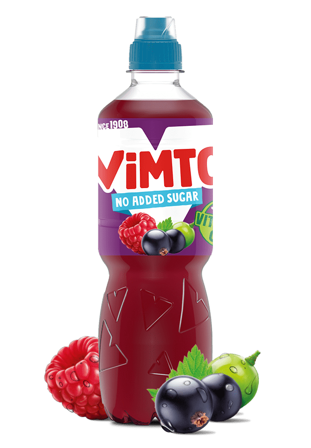 Water, Mixed Fruit Juices from Concentrate 5% (Grape, Blackcurrant, Raspberry), Acids (Citric Acid, Malic Acid), Vimto Flavouring (including Natural Extracts of Fruits, Herbs, Barley Malt and Spices), Colouring Food (Concentrates of Carrot, Hibiscus), Vitamin C, Preservatives (Potassium Sorbate, Sodium Benzoate), Acidity Regulator (Sodium Citrate), Sweeteners (Sucralose, Acesulfame K), Flavourings, Vitamin D